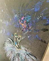 伝統的バレエ団のなかにあってトップダンサーであるプリマバレリーナ。観客の前で華やかに踊る一方で常に高い期待や競争にさらされている。この絵はそのようなプレッシャーや孤独から解放されたい強い感情を「身体の爆発」という形で表現してみました。