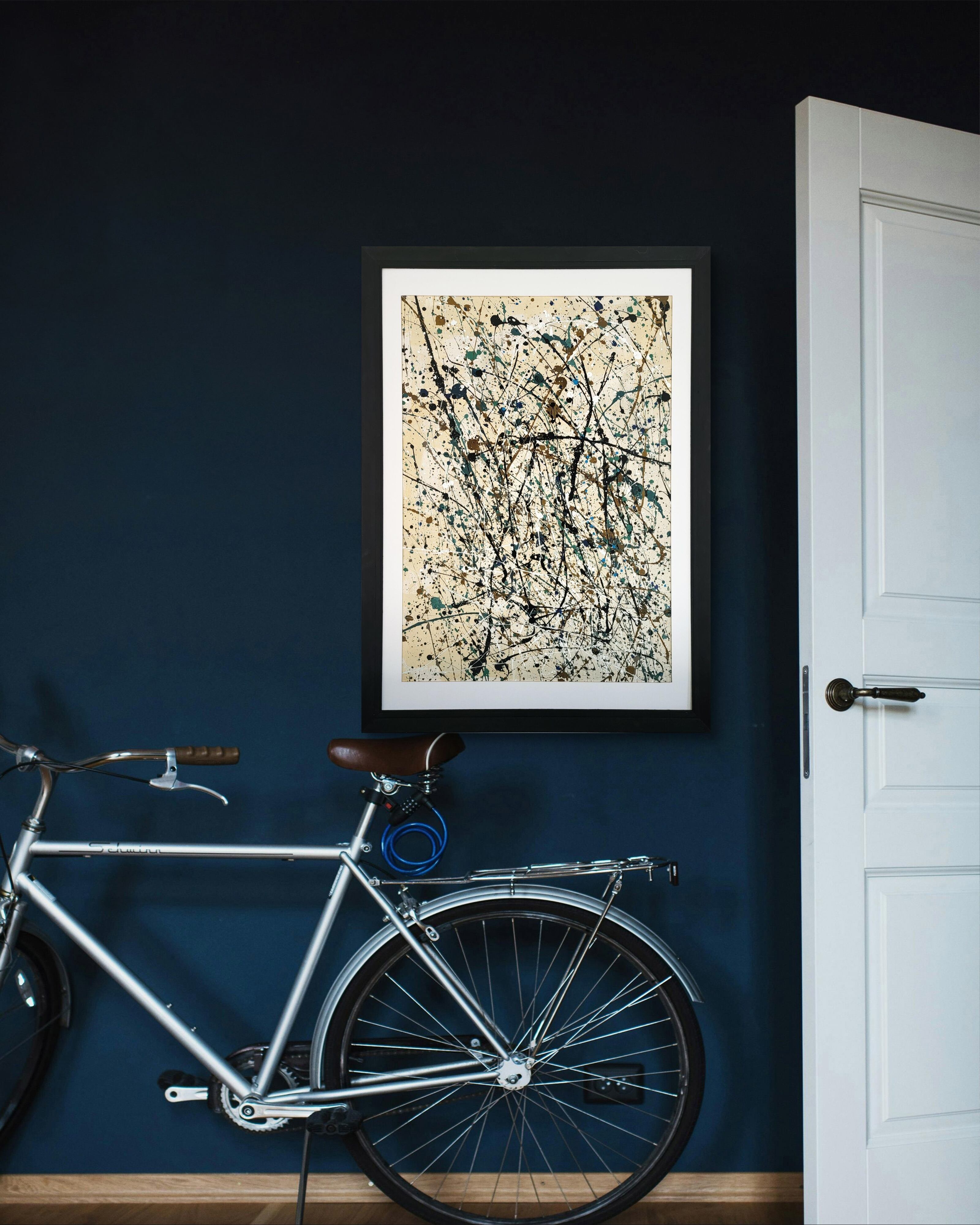 主張しすぎない色合いなので飽きがない、一方で、弾けるダイナミックな線描画が心を揺さぶってくれることでしょう。